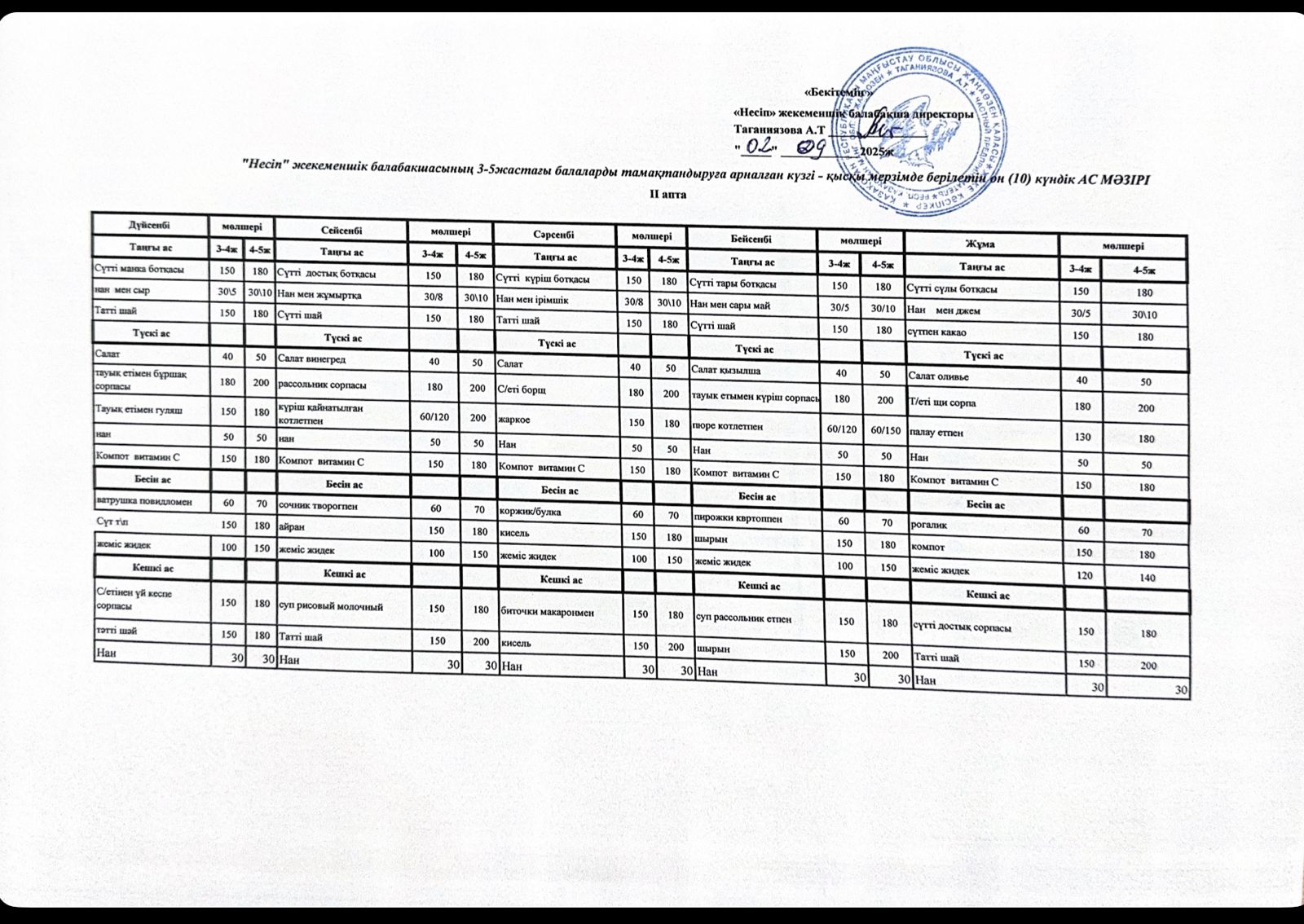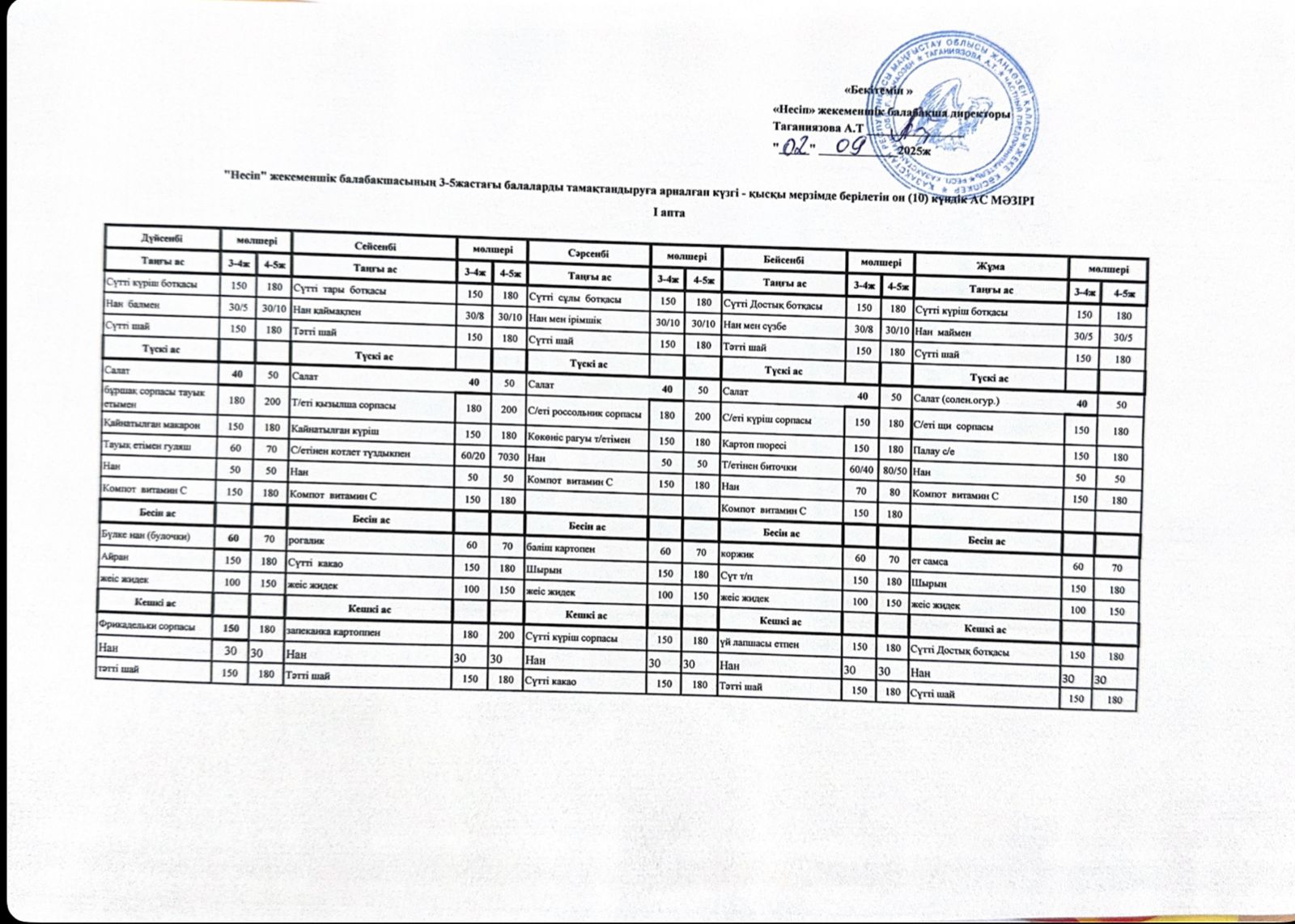Циклограмма по месяцам Частный детский сад Несіп 2025-2026